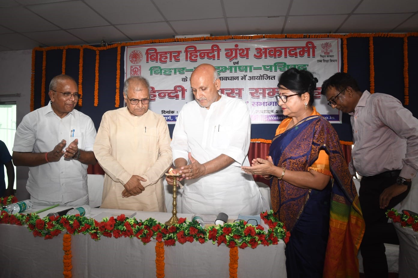 फोटो- हिंदी दिवस पर आयोजित कार्यक्रम का उद्वघाटन करते शिक्षा मंत्री प्रो. चन्द्रशेखर व अन्य।