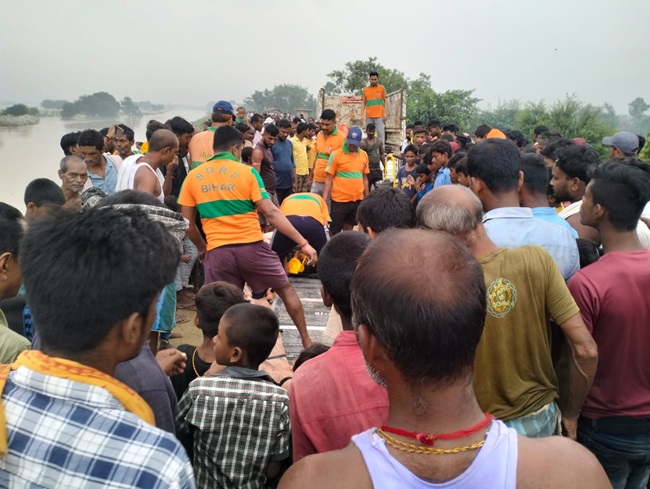 सहरसा में पश्चिम कोसी तटबंध टूटने के बाद अचानक बेघर हुए लोग