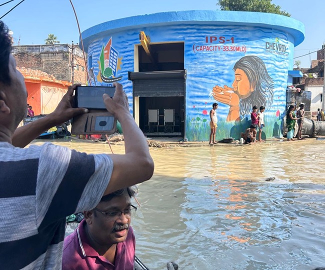 छपरा शेरपुर में बना वाटर ट्रीटमेंट प्लांट में घुसा बाढ़ का पानी।