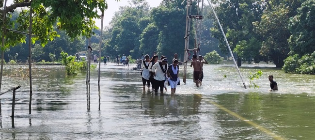 Flood in Bihar बिहार में भारी बारिश के बाद अब बाढ़ ने लोगों को डराना शुरू कर दिया है। पटना बेगूसराय सारण समेत कई जिलों के निचले इलाके में बाढ़ का पानी घुसना शुरू हो गया है। कई जगह तो स्कूल और कॉलेजों में भी बाढ़ का पानी घुस गया है। जिसके चलते विद्यालयों को बंद करने का आदेश जारी किया गया है।