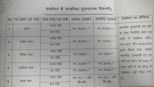 - वेतन 50 हजार से 65 हजार रुपये किया गया है।