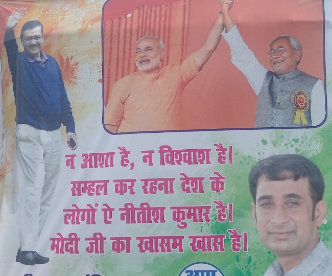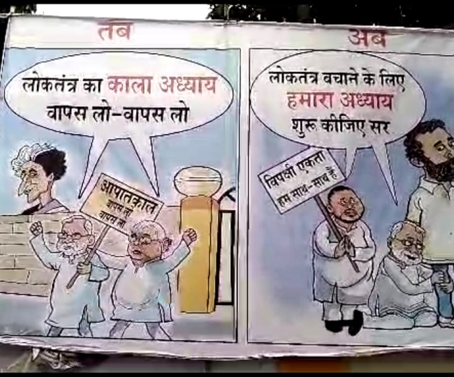 एक होर्डिंग में लिखा गया है- लोकनायक जय प्रकाश के शिष्य होने का दावा करने वाले आज उनको गिरफ्तार करने वालों के साथ खड़े हैं। इसमें जेपी की पुरानी तस्वीरों को लाकर दिखाया गया है कि उस समय कांग्रेस ने कैसा दमन किया था और जेपी के साथ तब कैसा व्यवहार हुआ था।