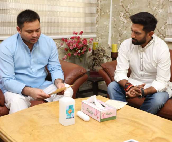 रामविलास पासवान की बरसी के लिए तेजस्वी (बाएं) को निमंत्रण देने पहुंचे चिराग। जागरण आर्काइव