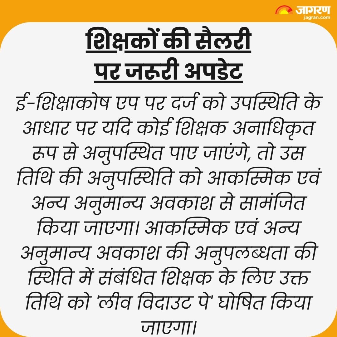 बता दें कि सर्वर डाउन, नेटवर्क की समस्या या अन्य तकनीकी समस्या के कारण यदि प्रधानाध्यापक-शिक्षक अपनी उपस्थिति दर्ज नहीं कर पाएंगे, तो शिक्षक द्वारा भौतिक रूप से उपस्थिति पंजी दर्ज उपस्थिति के आधार पर वेतन भुगतान का प्रविधान भी किया गया है।