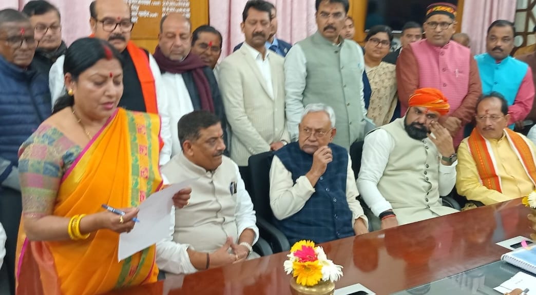 Bihar Political News आज डॉ. भीम सिंह एवं धर्मशीला गुप्ता बुधवार को पर्चा भर दिया है। पार्टी नेतृत्व के निर्देश पर दोनों नेताओं ने मंगलवार को नामांकन से संबंधित सभी तैयारियां पूरी कर ली हैं। विधानसभा में नामांकन के मौके पर मुख्यमंत्री नीतीश कुमार उप मुख्यमंत्री सम्राट चौधरी एवं विजय सिन्हा के अलावा राजग के कई वरिष्ठ नेता एवं विधायक उपस्थित रहे।