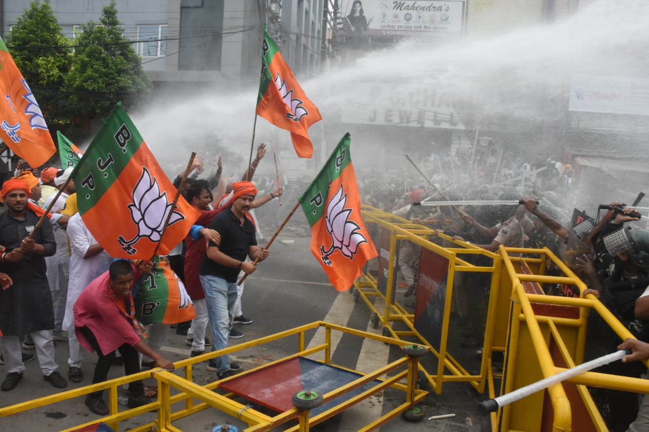 बहरहाल, बुधवार को गांधी मैदान से विधानसभा तक शुरू हुए भाजपा के प्रदर्शन को रोकने के लिए जिला प्रशासन ने शहर में हजारों की संख्या में पुलिस के रंगरूटों को तैनात कर दिया था।