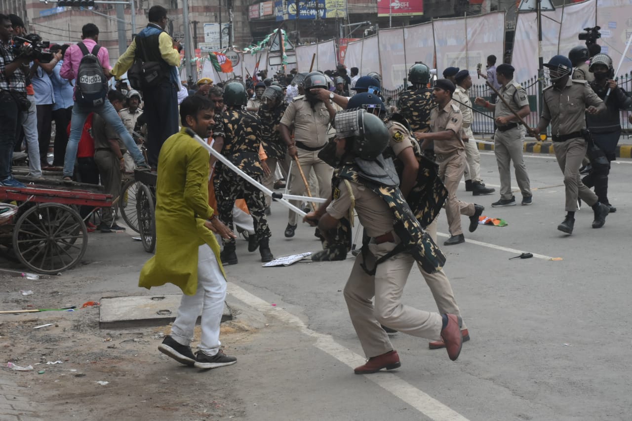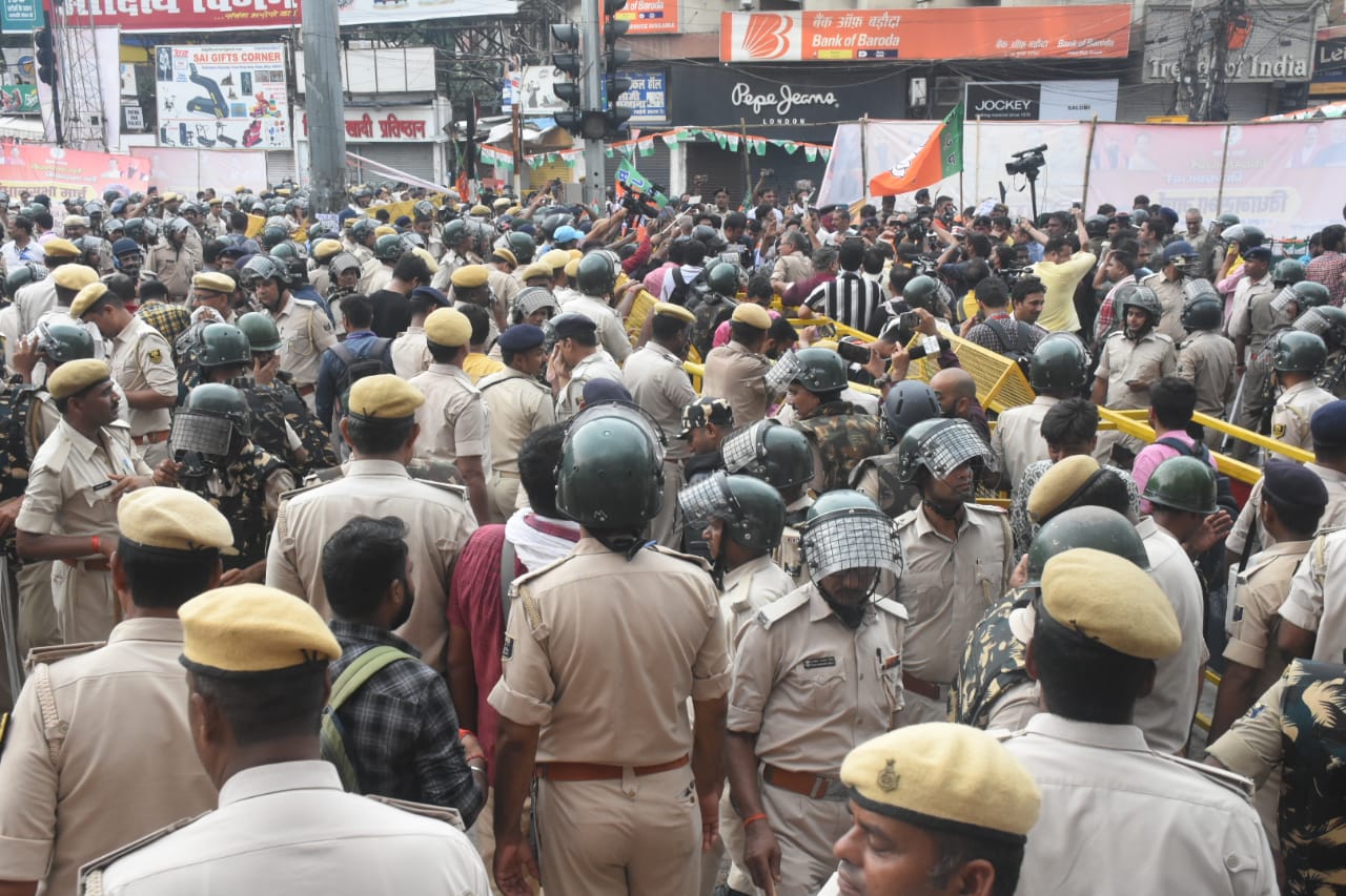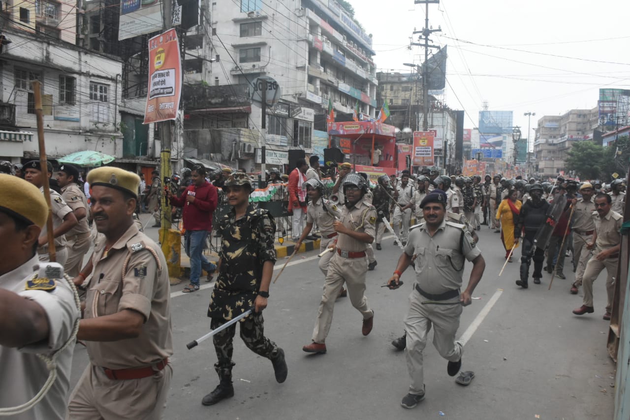 दोपहर एक बजे बाद जैसे ही मार्च में शामिल भाजपा नेता गांधी मैदान से विधानसभा की ओर बढ़े, वैसे ही डाक बंगला चौराहे के पास पुलिस ने आक्रोशित भीड़ को आगे बढ़ने से रोका और देखते ही देखते सड़क पर झड़प की स्थिति बन गई।
