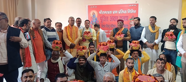 आगामी 22 जनवरी, 2024 को होने वाले प्राण-प्रतिष्ठा समारोह के कार्यक्रम का सूचना पत्रक व पूजित अक्षत बिहारवासियों को वितरित किया जाएगा।