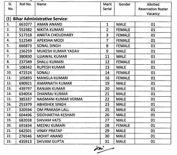 एससी पुरुष व महिला का कटऑफ क्रमश: 510 व 501, एसटी का 507 व 474, ईबीसी का 541 व 526, बीसी का 550 व 532 तथा अति पिछड़ा महिला का 532 अंक कटऑफ रहा है।