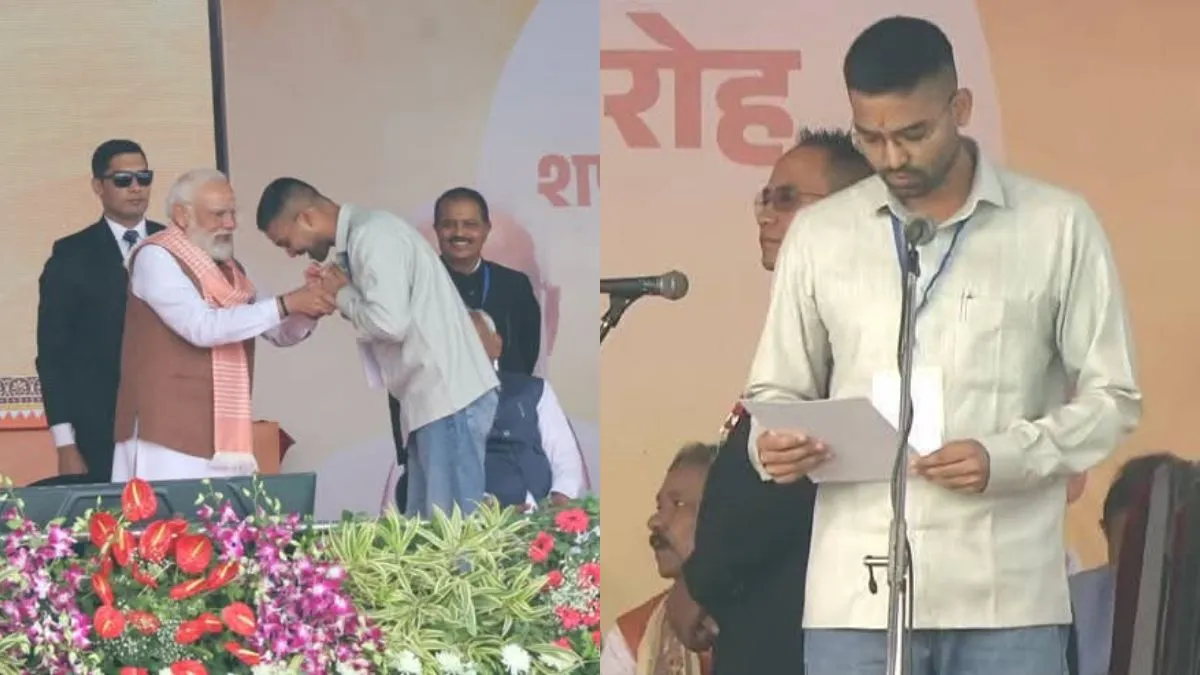 शपथ के दौरान पीएम मोदी से आशीर्वाद और शपथ लेते दीपक प्रकाश। फाइल फोटो