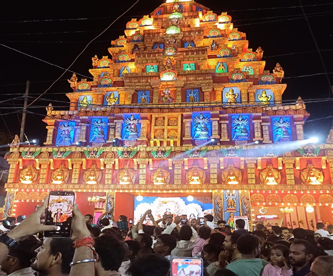 पूजा पंडालों में भक्तों का रेला, मां की भक्ति में डूबा शहर, घरों में कन्या खिलाकर लोगों ने लिया आशिर्वाद