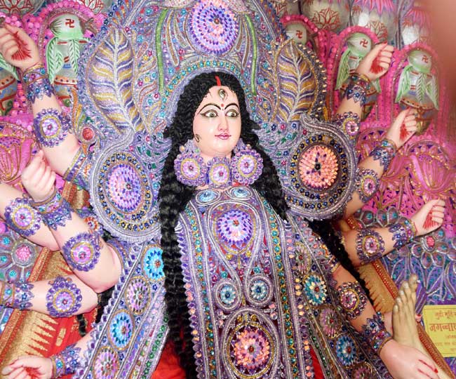 Durga Puja 2019 : बंगाली दुर्गा प्रतिमाओं के पट खुले, शंख-ढोल-नगाड़े से गूंजा शहर; मां को मिला निमंत्रण