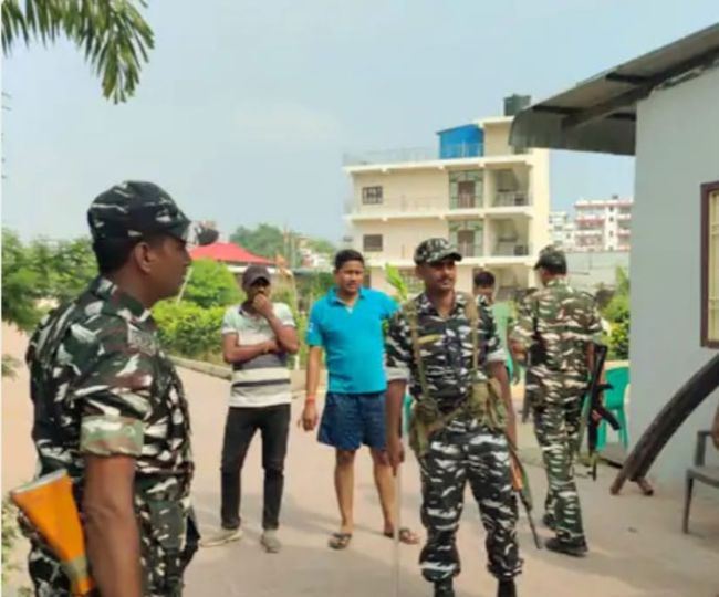 (छापेमारी के दौरान तैनात केन्द्रीय रिजर्व बल के जवान)