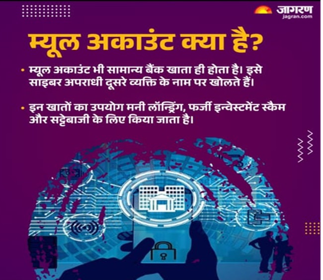 साइबर अपराध में शामिल संदिग्ध बैंक खातों को म्यूल एकाउंट (Mule Account) कहते हैं। साइबर अपराधी ठगी के पैसों के लेन-देने के लिए कभी भी अपने खाते का इस्तेमाल नहीं करते हैं।