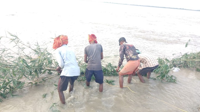 हालांकि, इसे रोकने के लिये गंडक विभाग के एसडीओ विजय कुमार अपनी उपस्थिति में सोमवार को भी राहत एवं बचाव कार्य में जुटे रहे। कटाव स्थल पर बांस एवं झाड़ी से पानी के तेज धार को कम करने का प्रयास किया जा रहा है। साथ ही सीमेंट की बोरी में बालू भर कर डाला जा रहा है, लेकिन वह भी बेअसर दिख रहा है।