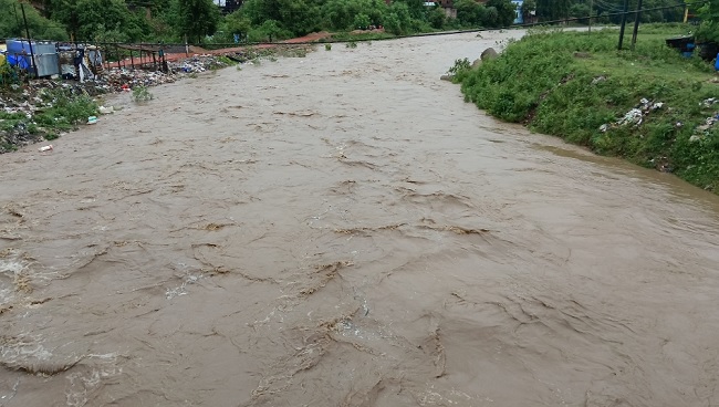 नदी में पानी का तेज बहाव को देखने के लिए पुल पर कई लोग पहुंचे। शुक्रवार को दिनों भर झमाझम वर्षा होती रही। आसमान में काले काले बादल छाए रहे।