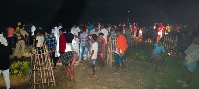 गोविंदपुर के सकरी नदी के पास जुटी ग्रामीणों की भीड़।