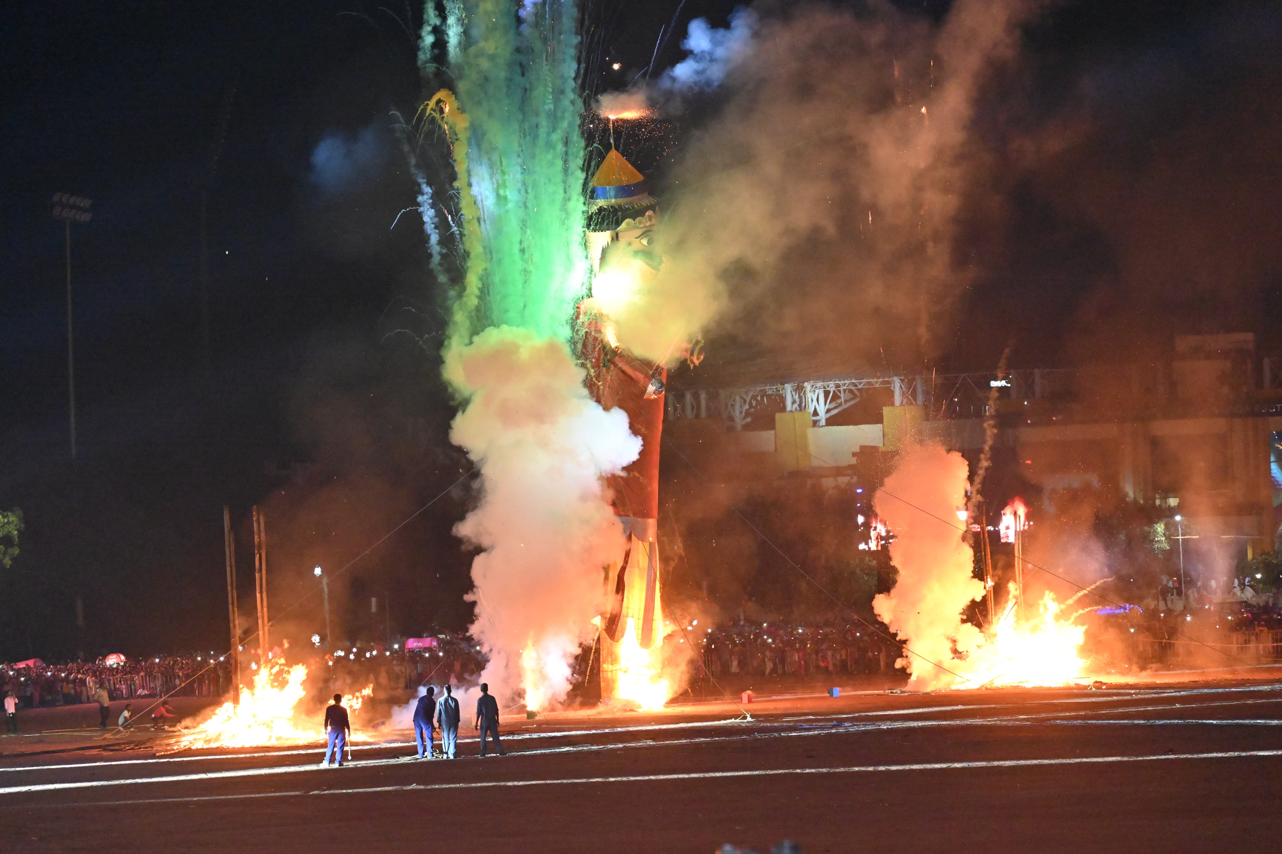 मुख्यमंत्री ने इस अवसर पर विशिष्ट अतिथियों की उपस्थिति में वर्षों से चली आ रही परंपरा का निर्वहन करते हुए रावण का पुतला फूंककर अन्याय पर न्याय की जीत का संदेश दिया। इस अवसर पर लंका दहन तथा कुंभकर्ण एवं मेघनाथ के पुतले फूंके गए।