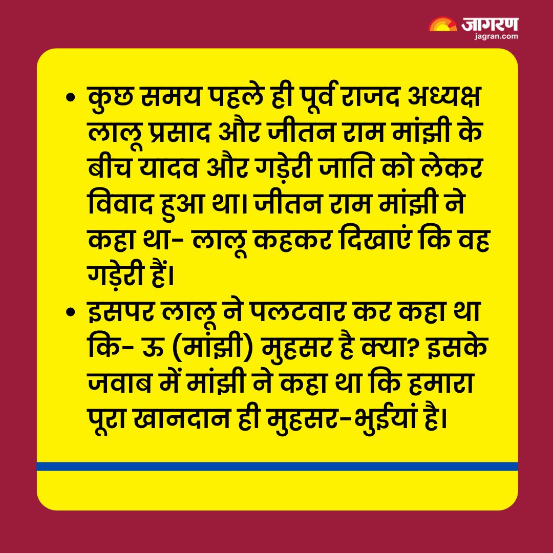 मांझी ने एक्स पर लिखा, हम मुसहर परिवार के लोग हैं। हम गर्व से कहते हैं कि हम चूहा पकड़ते भी हैं और उसे खाते भी हैं, इसलिए हमारे घरों और झोपड़ियों में तो छोड़ ही दीजिए। हमारे आस-पास भी चूहा नहीं भटकता।