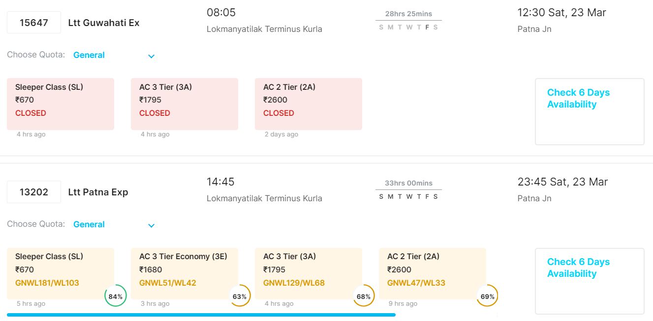 - पटना एक्सप्रेस (13202 Ltt Patna Exp)