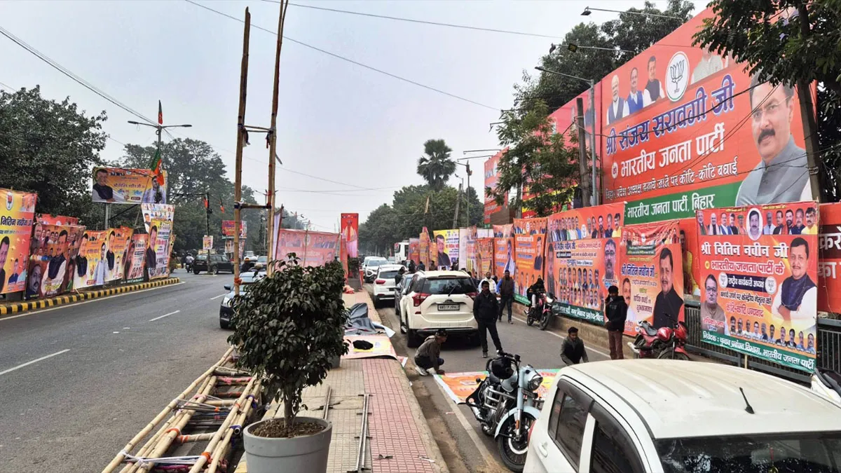 बैनर-पोस्टर से पटा वीरचंद पटेल पथ। जागरण