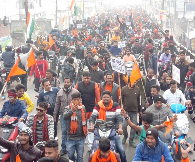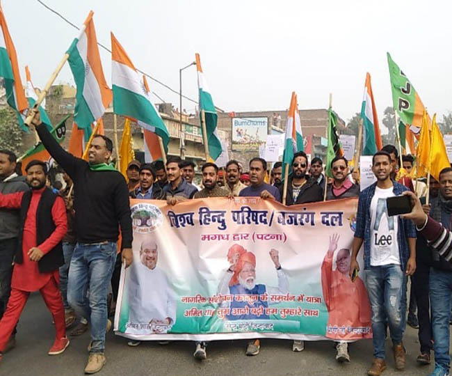 रविवार को पटना के बख्तियारपुर में बजरंग दल के कार्यकर्ताओं ने सीएए के समर्थन में जुलूस निकाला। इस दौरान पीएम नरेंद्र मोदी जिंदाबाद के नारे भी लगे।