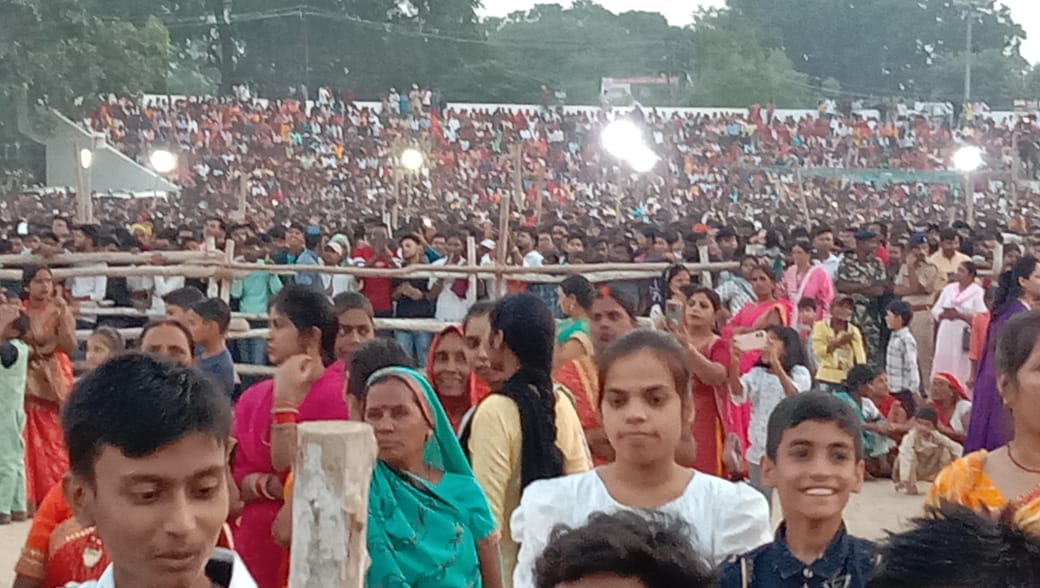 गया के गांधी मैदान में रावण वध को देखने के लिए उमड़ी भीड़। फोटो - जागरण