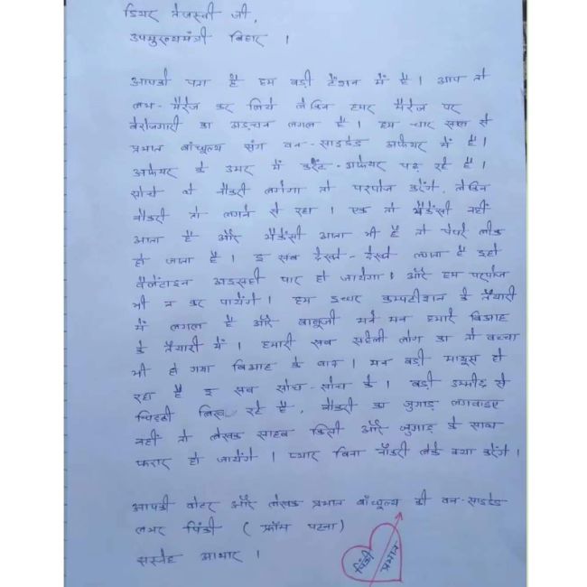 सोशल मीडिया पर पिंकी का लेटर तेजी से वायरल हो रहा है। इसमें वह लिखती है कि हम बहुत टेंशन में हैं। आप तो लव मैरेज कर लिए, लेकिन हमर मैरेज पर बेरोजगारी का अड़चन लगल है। हम चार साल से प्रभात बांधूल्य संग वन-साइडेड अफेयर में हैं। अफेयर के उम्र में करेंट अफेयर पढ़ रहे हैं। सोचे कि नौकरी लगेगा तो प्रपोज करेंगे, लेकिन नौकरी तो लगने से रहा।