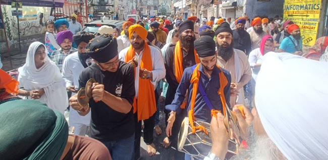 पंच-प्यारे की अगुवाई और बैंड-बाजे के साथ तलवार, भाला व ढाल लिए सिख संगत श्री गोविंद सिंह घाट गई। उसके बाद झाऊगंज गली मार्ग होते अशोक राजपथ से चौक होते मंगल तालाब भ्रमण करते नगर-कीर्तन बाल लीला गुरुद्वारा मैनी संगत पहुंची। बाललीला गुरुद्वारा में कीर्तन से संगत निहाल हुई।