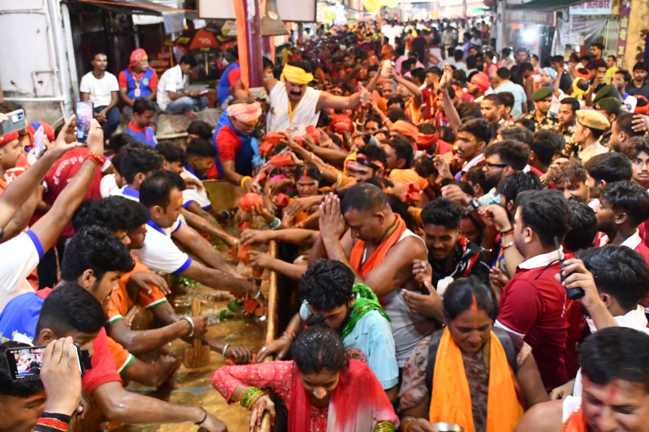 मुजफ्फरपुर: सावन माह की सोमवारी पर बाबा गरीबनाथ पर जलाभिषेक करने के लिए भक्तों की लंबी कतार। जागरण