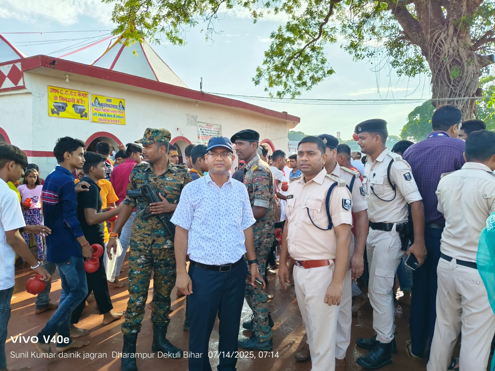 शिवहर: देकुली धाम में व्यवस्था का जायजा लेते एसडीओ व एसडीपीओ।