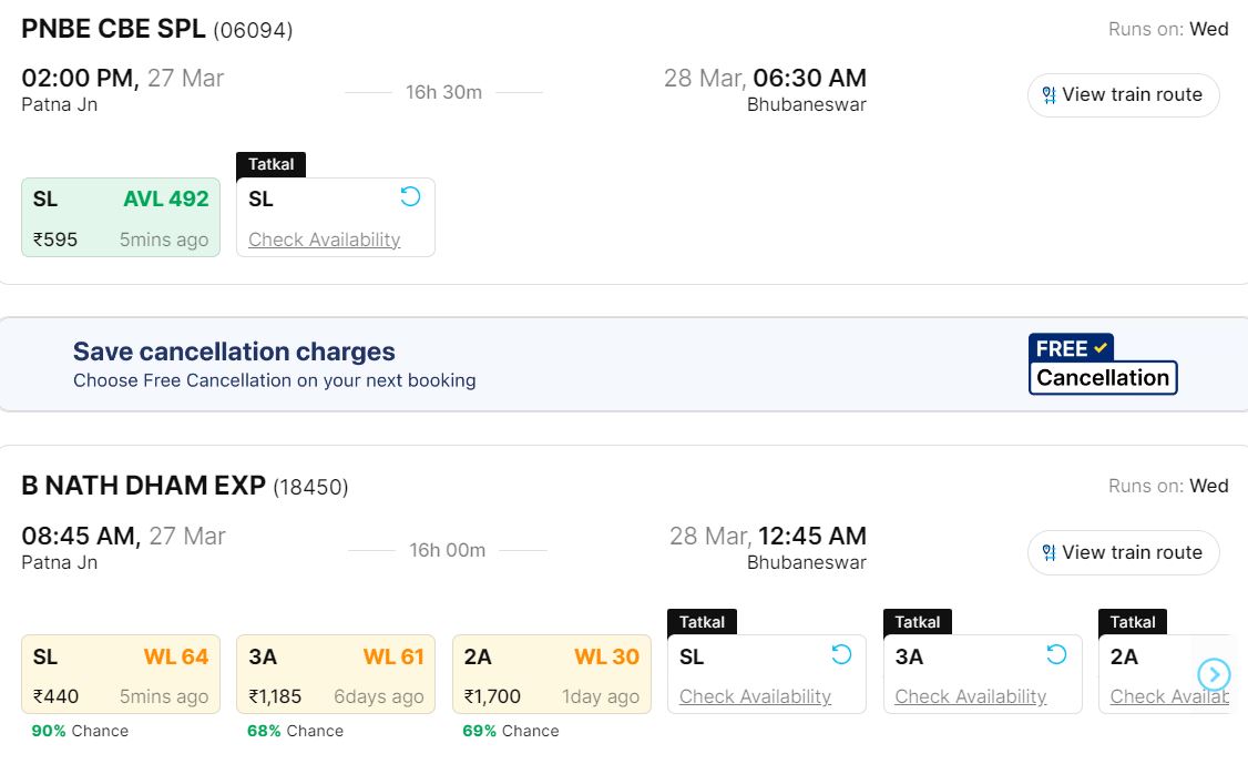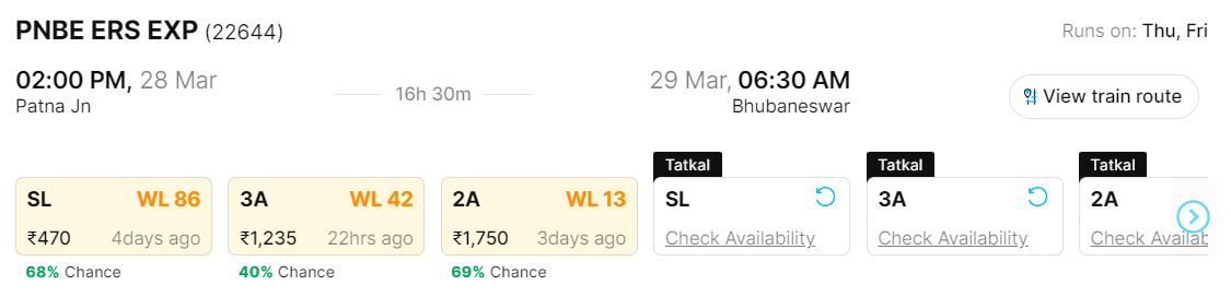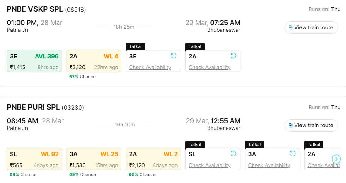 पटना से भुवनेश्वर जाने वाली ट्रेनों में वेटिंग की स्थिति