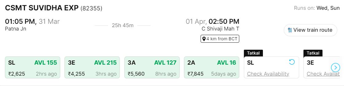 - सुविधा एक्सप्रेस (CSMT SUVIDHA EXP 82355)