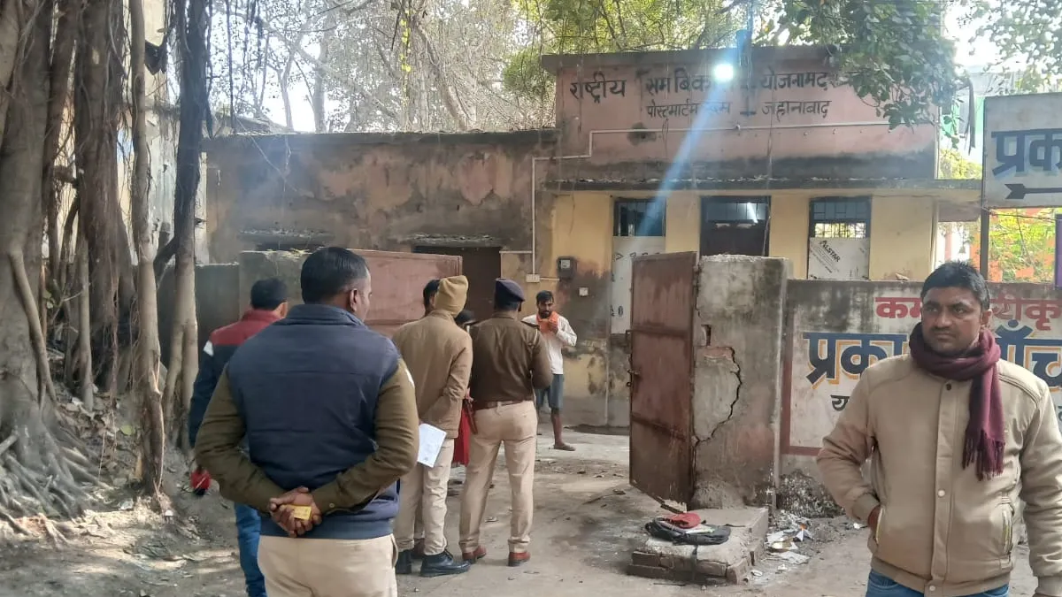 पोस्टमार्टम हाउस के पास मौजूद लोग
