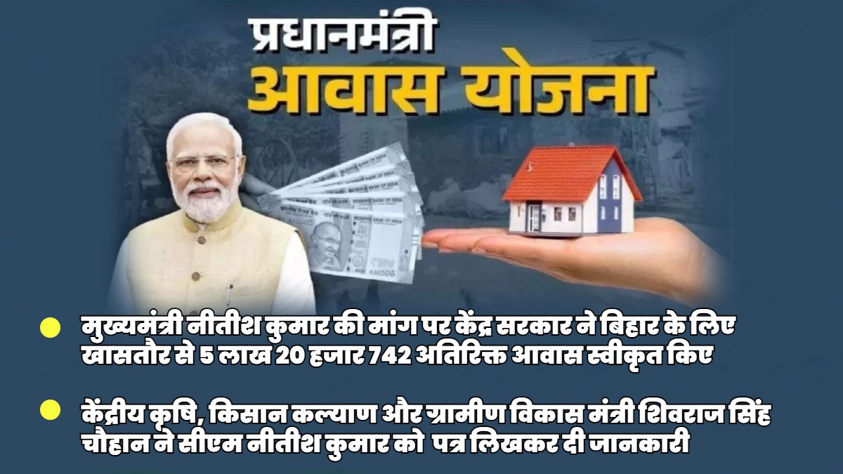 Bihar News प्रधानमंत्री आवास योजना (पीएमएवाई-जी) के तहत बिहार में प्रतीक्षा सूची समाप्त हो गई है। केंद्र सरकार ने राज्य को 5 लाख 20 हजार 742 अतिरिक्त आवास आवंटित किए हैं। इस कदम से 2018 से चली आ रही वेटिंग लिस्ट लगभग खत्म हो गई है। मुख्यमंत्री नीतीश कुमार ने केंद्र से की थी मांग जिसके बाद यह अतिरिक्त सुविधा प्रदान की गई है।