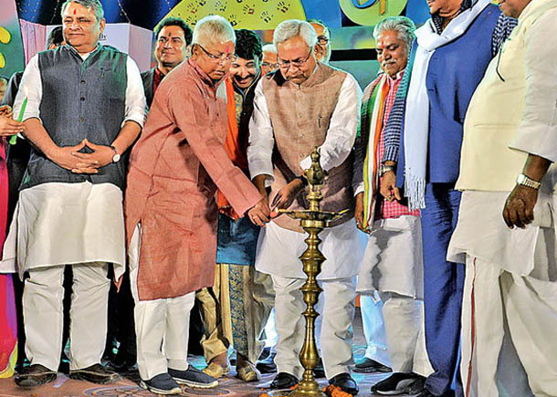 भारतीय नृत्य कला मंदिर के मुक्ताकाश मंच पर शुक्रवार को होली का एक कार्यक्रम आयोजित किया गया था।यहां सीएम नीतीश कुमार और सांसद शत्रुघ्न सिन्हा के बीच गुफ्तगू चली तो राजद के राष्ट्रीय अध्यक्ष लालू प्रसाद पर होली का रंग चढ़ा।