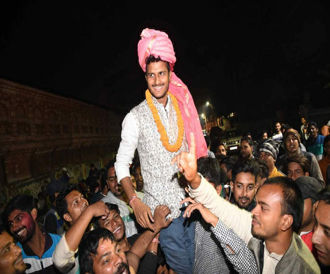 जीत के साथ ही अध्यक्ष को पगड़ी पहना मनाया जश्न