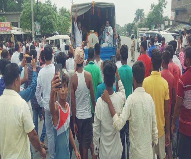 साढ़े नौ बजे रघुवंश बाबू का लाया गया पार्थिव शरीर, प्रशासन द्वारा किए गए सारे इंतजाम हुए फेल