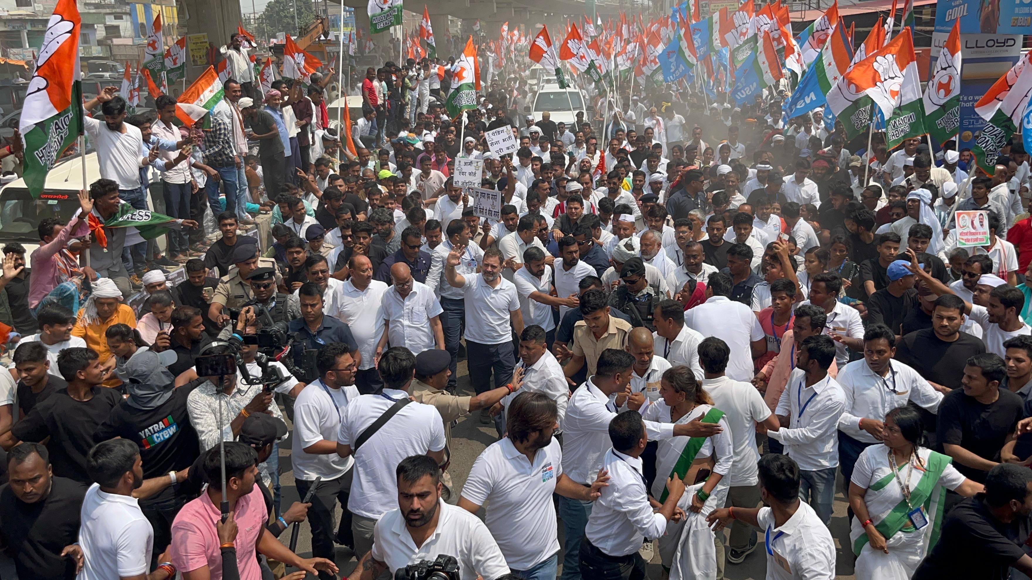 #WATCH | Bihar | Lok Sabha LoP and Congress MP Rahul Gandhi joins NSUI's 'Palayan Roko Naukri Do' Yatra in Begusarai. pic.twitter.com/Eaqn2IyDJH
