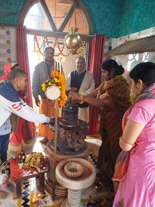औरंगाबाद के महेश्वर मंदिर में जलाभिषेक करते श्रद्धालु।