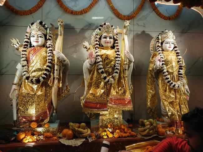 औरंगाबाद के पंचदेव मंदिर में स्थापित भगवान राम, लक्ष्मण और माता सीता की प्रतिमा।