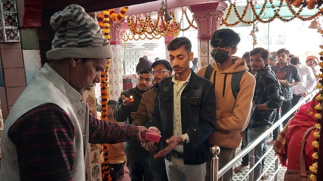 रोहतास में महावीर मंदिर में दर्शन पूजन के लिए उमड़ी श्रद्धालुओं की भीड़।
