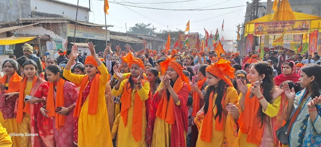झाझा में शोभायात्रा के दौरान श्रद्धालु महिलाएं।