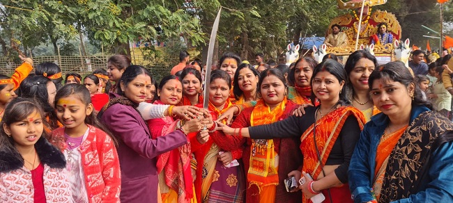 बांका में निकली शोभायात्रा में शामिल महिलाएं।
