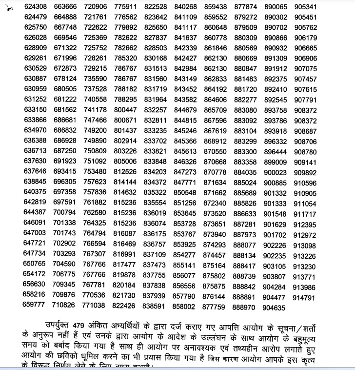 आयोग ने कहा है कि उक्त सभी अभ्यर्थियों को निर्देश दिया जाता है कि उन्हें अपने इस कृत्य के बचाव में कुछ कहना है तो 30 दिसंबर 2023 की शाम 5 बजे तक अपना-अपना स्पष्टीकरण आयोग की वेबसाइट पर देना सुनिश्चित करें।