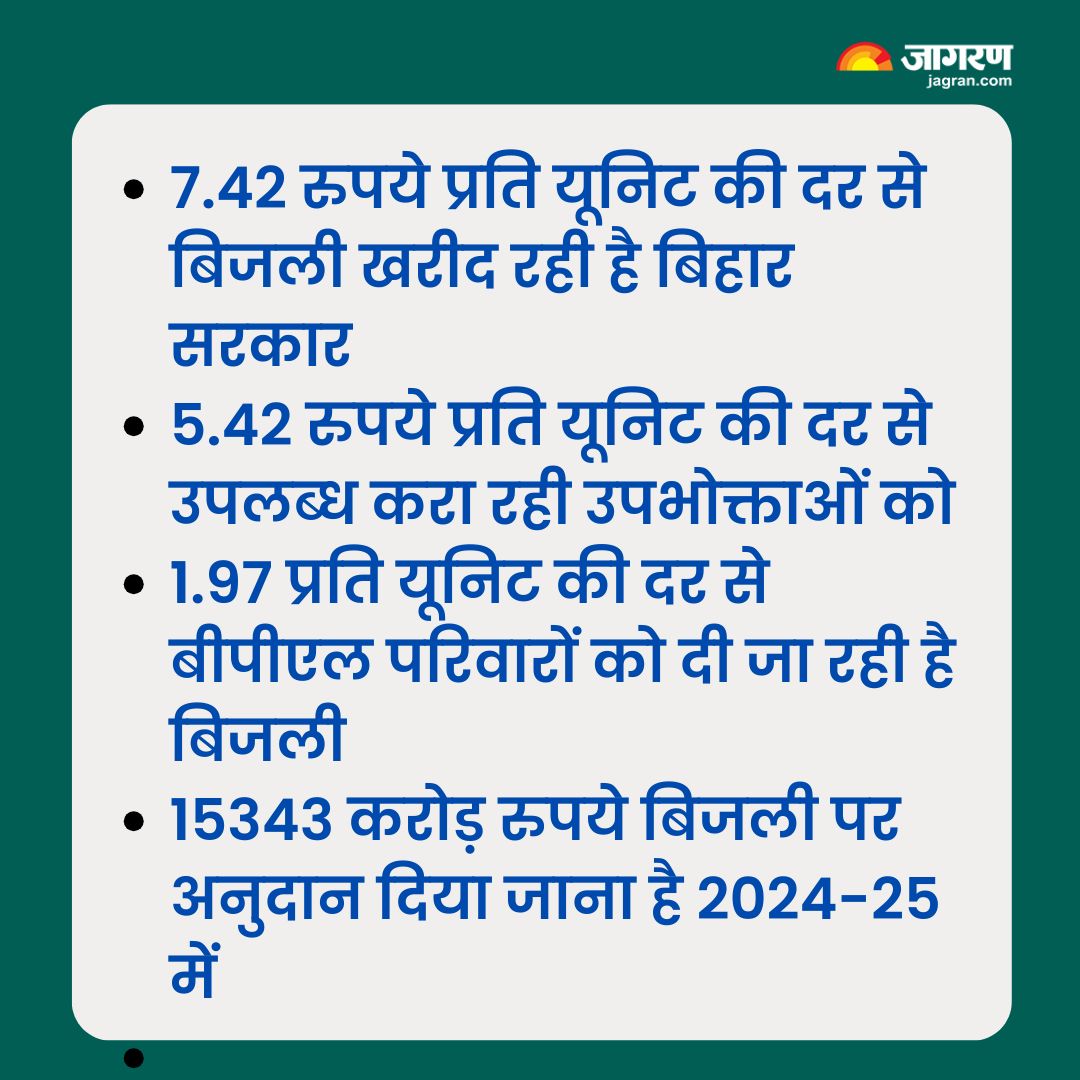 - 7.42 रुपये प्रति यूनिट की दर से बिजली खरीद रही है बिहार सरकार