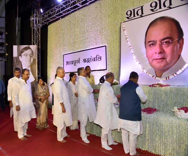 दिवंगत अरुण जेटली को शनिवार को एनडीए की ओर से श्रद्धांजलि दी गई। उनकी प्रतिमा पटना में लगेगी। इसकी घोषणा सीएम नीतीश कुमार ने की। उन्होंने कहा हम उन्हें जीवन भर नहीं भूल सकते।