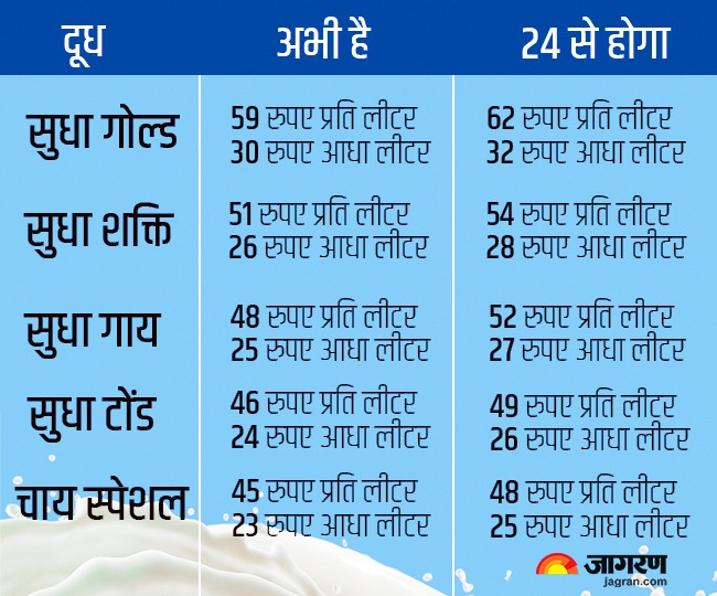 नई दरें लागू होने के बाद सुधा फुल क्रीम दूध पैकेट अब 59 रुपये की जगह 62 रुपये का हो गया है। शक्ति का एक लीटर पैकेट 51 रुपये के बजाय 54 रुपये में मिलेगा। वहीं, गाय का दूध 52 रुपये प्रति लीटर और टोंड दूध 49 रुपये प्रति लीटर बिक्री होगी। सभी वैरायटी के आधा लीटर पैक की कीमतों में भी वृद्धि की गई है।