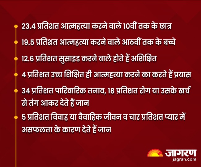 जागरण संवाददाता, पटना : दुनिया में हर वर्ष करीब सात लाख लोग आत्महत्या करते हैं। विश्व स्वास्थ्य संगठन (डब्ल्यूएचओ) के अनुसार, हर 40 सेकेंड में एक व्यक्ति आत्महत्या करता है, जबकि 20 से 25 गुना लोग इसके लिए प्रयास करते हैं।