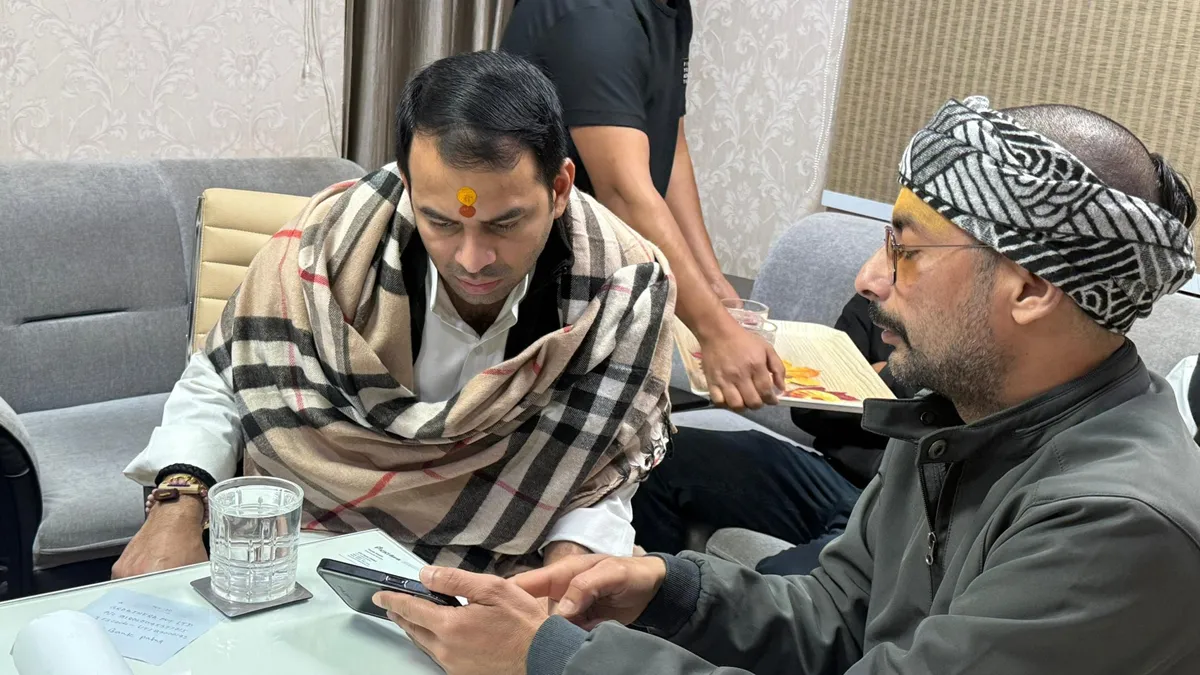 आशुतोष कुमार से बातचीत करते तेज प्रताप यादव। एक्स